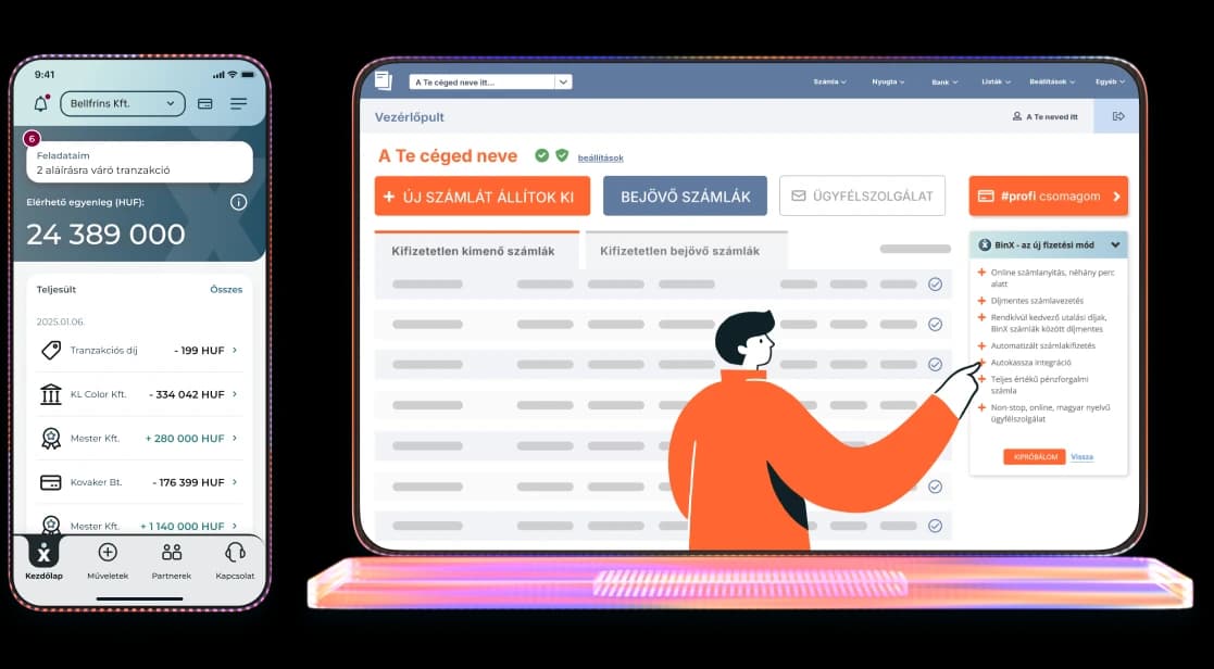 A BinX a vállalkozók igényeire szabott bankolást hoz: átlátható csomagok, költséghatékony számlavezetés és a cégek mindennapjait valóban megkönnyítő funkciók.