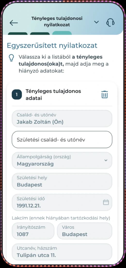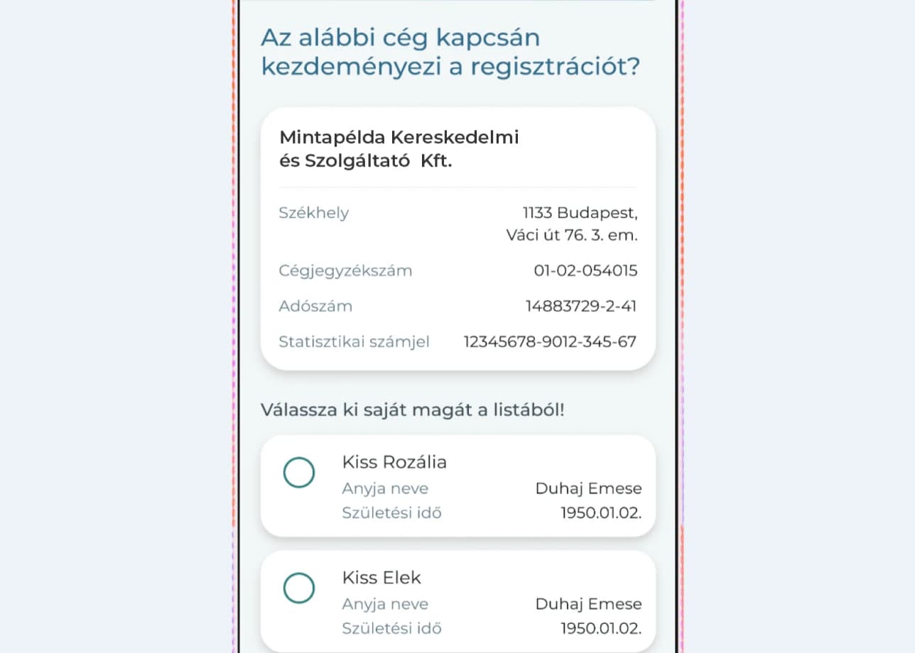 Egyéni vállalkozóként a regisztrációs folyamat egyes lépései eltérnek az itt bemutatottól, például szükséged lehet egy Webes Ügysegédből letöltött dokumentum feltöltésére.