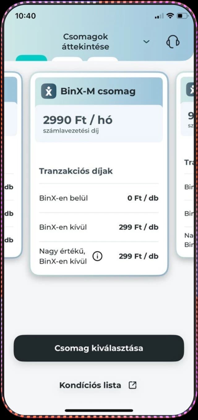 BinX-en kívüli, legalább 5.000.000 Ft összegű utalások díja